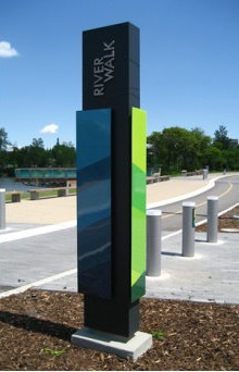 戶(hù)外立式形象標(biāo)識(shí)牌的風(fēng)格設(shè)計(jì)欣賞,標(biāo)牌的整體色彩搭配設(shè)計(jì)很時(shí)尚、具有很強(qiáng)的視覺(jué)沖擊感。